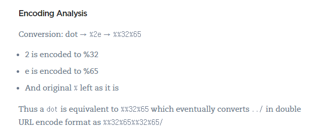 To prevent path traversal attacks, the normalization function which is responsible to resolve URL-encoded values from the requested URI, resolved Unicode values one at a time. Hence when URL encoding the second dot as %2e , the logic fails to recognize %2e as dot thereby not decoding it, this converts the characters ../ to .%2e/ and bypasses the check.