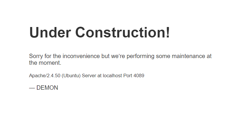 사이트에 접속해보니 "공사중"이라는 메시지와 함께 페이지에 접근할 수 없다고 말하고 있습니다.