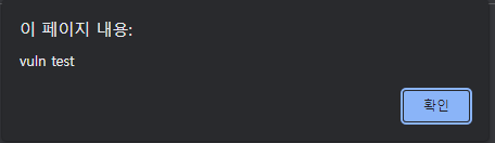 xss 취약점을 테스트 하기 위에 저는 한번 <script>alert("vuln test")</script>를 input에 삽입한 후 결과를 확인해보았습니다.