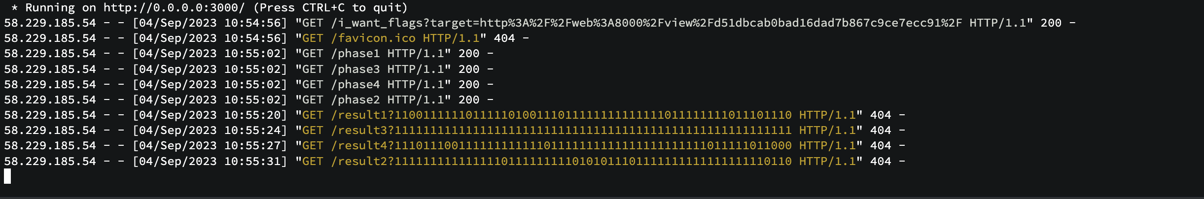 -> i_want_flags로 내부 서버를 열어 요청을 진행하면 phase를 통해 1바이트씩 임시 토큰을 유출하기 위해 오류가 발생하는 암호학 코드를 작성함