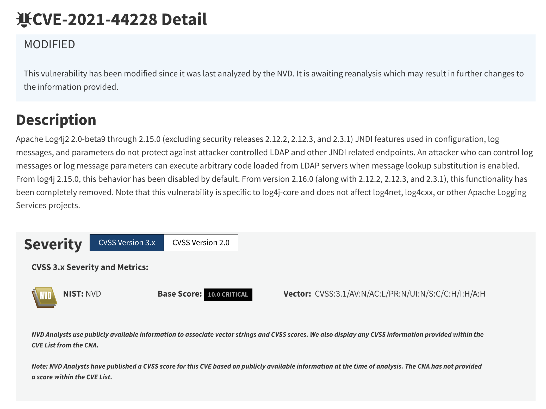 굉장히 많은 기업들에게 동시다발적으로 발생하게된 취약점이고 라이브러리의 사용도가 굉장히 높았기 때문에, 해당 취약점의 크리티컬 분류 스코어는 가장 높은 단계인 10.0으로 분류되어있습니다.