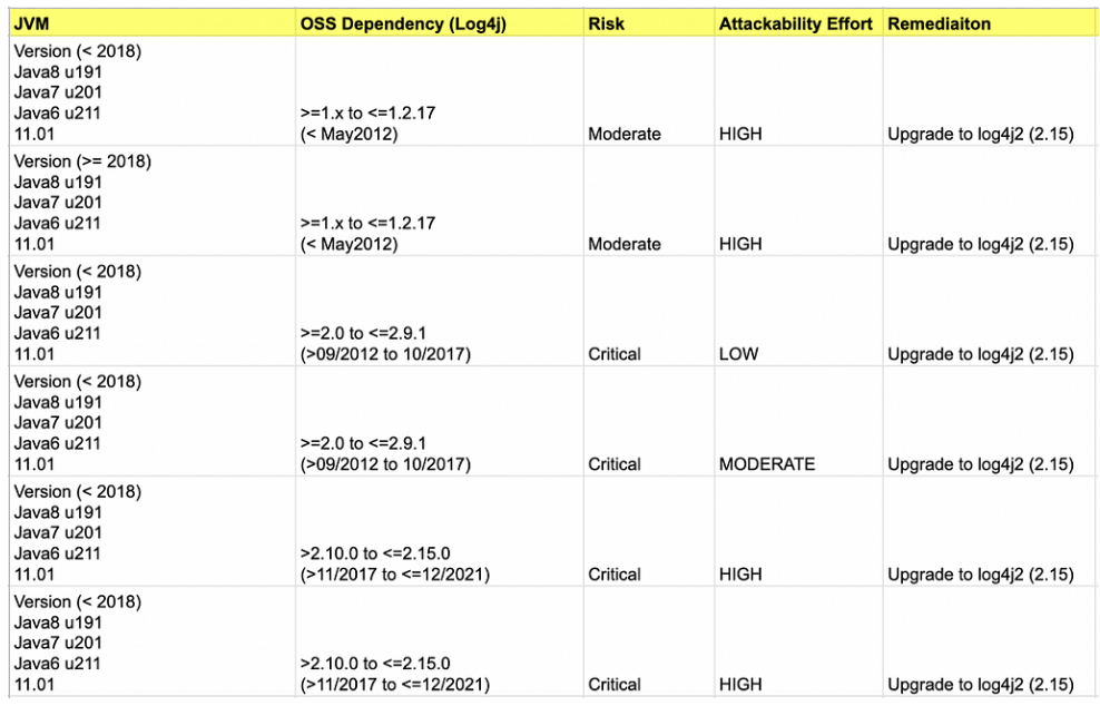 아래는 공격 가능한 java의 취약한 버전의 범위도입니다.
